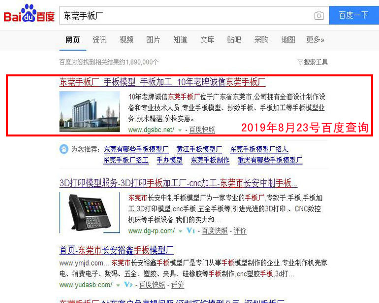 東莞手板廠 : 2019-02-28上線 2019-03-05百度第18名 2019-03-19百度第8名 2019-03-25百度第2名(排名第1名的網(wǎng)站www.dgsbc.net也是我公司管理優(yōu)化的網(wǎng)站)